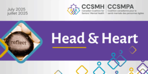 All seniors have the right and deserve to receive services and care that promotes their mental health and responds to their mental illness needs. The Canadian Coalition for Seniors' Mental Health (CCSMH) is hard at work ensuring that seniors' mental health is recognized as a key Canadian health and wellness issue.